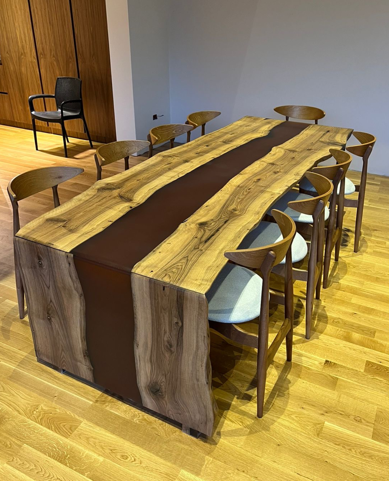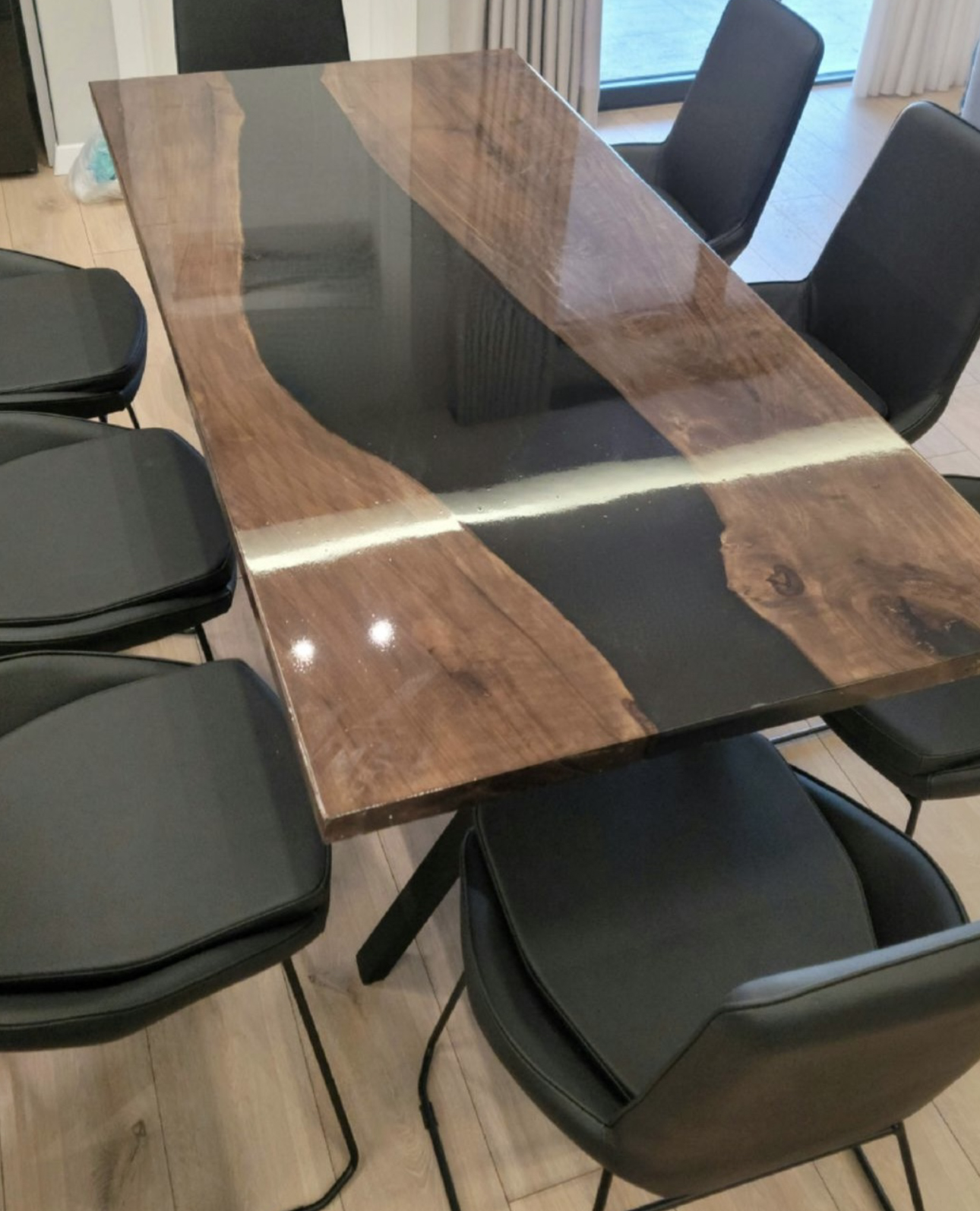 Massivholztisch mit Epoxid (Nussbaum)