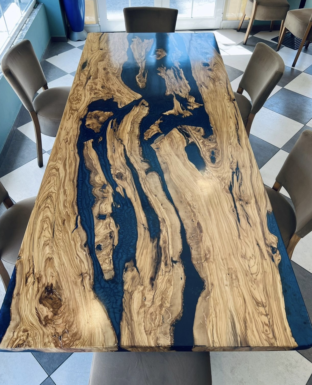 Beisteltisch mit Epoxidharz (Olivenbaum)